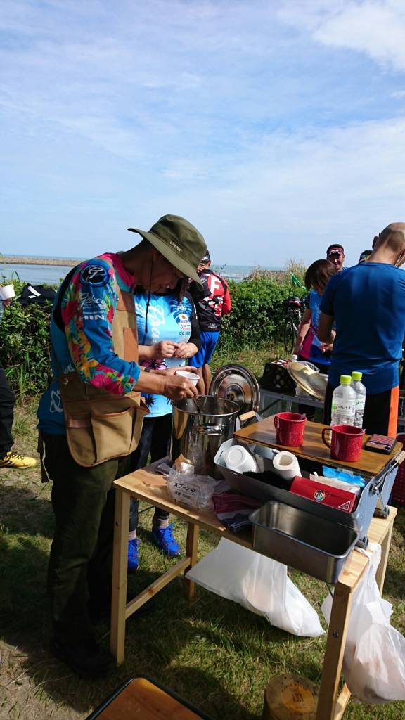 レース後はチームメイトで本格シェフのお二人がグレイステントでカレーとぜんざいの振る舞いをしていただき